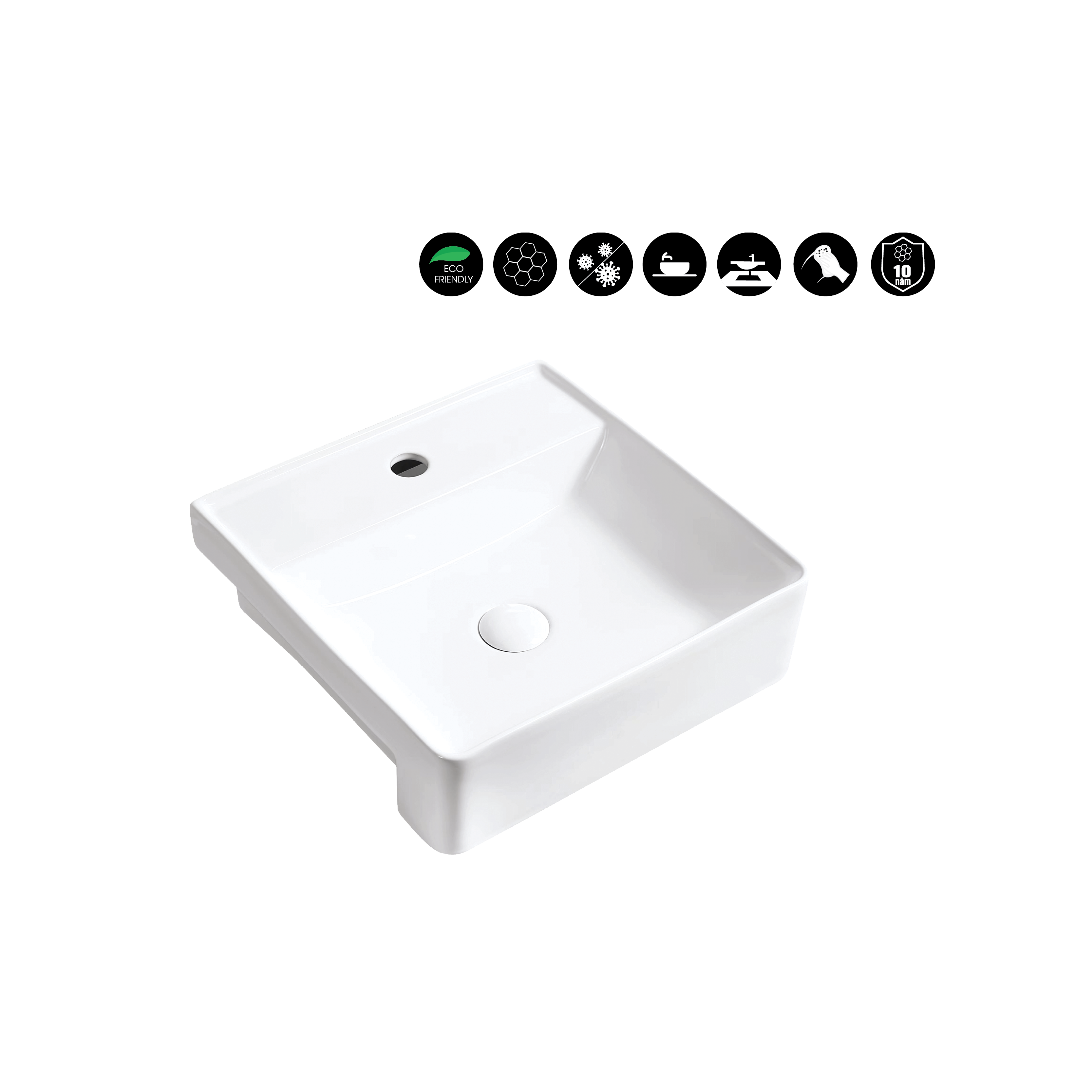 Chậu rửa mặt chữ nhật với màu trắng trang nhã cùng kiểu dáng phong phú, thiết kế gọn gàng, dễ dàng lắp đặt và tiết kiệm diện tích, phù hợp với không gian nhỏ, có thể kết hợp hoàn hảo với nhiều kiểu bài trí khác nhau, mang lại cho không gian phòng tắm nhà bạn thêm sang trọng và tinh tế.