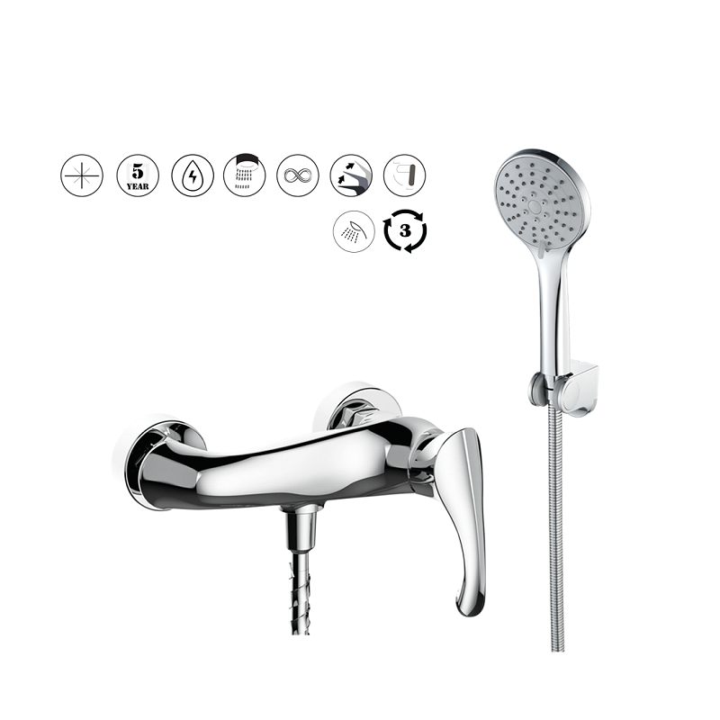 • Bộ phụ kiện chất lượng cao như hoa sen mạ crom thiết kế thời trang, tay sen 3 chế độ, dây sen mạ crom, nắp chụp bằng đồng mạ crom, chân chữ Z bằng inox 304.